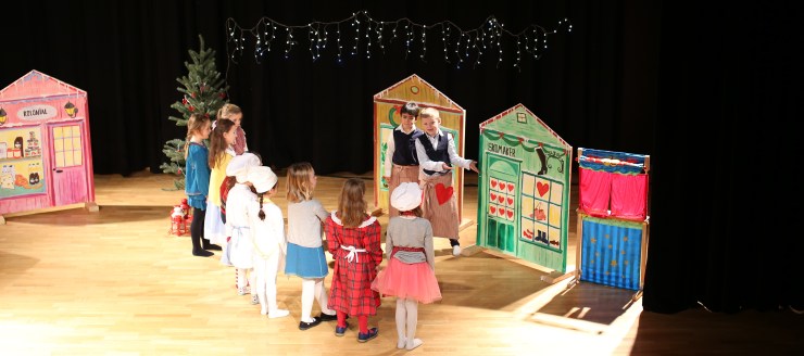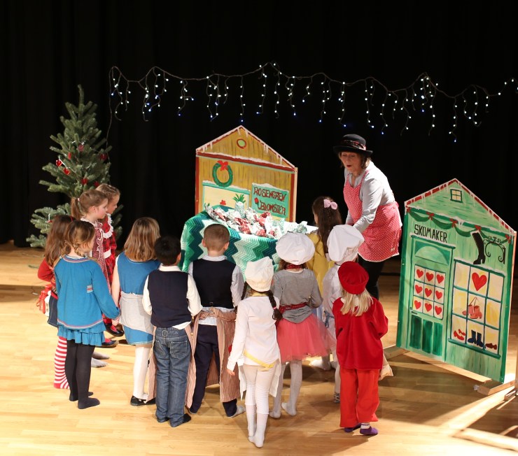 Teatergruppen med 6-7 åringer viste stolt frem forestillingen: «Jul i Skomakergaten» lørdag 9. desember 2017 på Ny-Krohnborg skole!